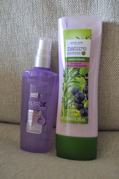 Aamuisin käytän kuivashampoota hiusten kohottamiseen, mutta ajattelin myös kokeilla jos tästä Oriflame Hair X Volume Boost hiuksiin jätettävästä hoitoaineesta olisi apua. Perinteiset hoitoaineet alkavat olemaan lopussa, joten tarjouksesta ostin sitten Nature Secrets Rosemary & Black Currant hoitoaineen.